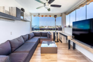 Dispone de un estudio privado con cocina y aseo, gimnasio equipado y acceso directo a una espectacular terraza abierta de 50 m², perfecta para relajarse, celebrar cenas al aire libre o disfrutar del jacuzzi con privacidad total.