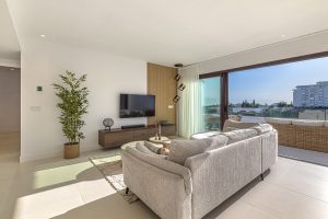 Esta elegante propiedad ofrece 2 amplios dormitorios y 2 modernos cuartos de baño de precioso diseño, creados pensando en el confort y en una vida contemporánea refinada. La luminosa zona de estar diáfana está inundada de luz natural y se integra a la perfección con una impresionante terraza privada de 50 m², sin duda una de las características más destacadas de la vivienda. Aquí encontrará un lujoso jacuzzi, que crea el escenario perfecto para relajarse mientras disfruta de impresionantes puestas de sol y vistas parciales al mar gracias a su privilegiada orientación suroeste.