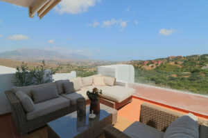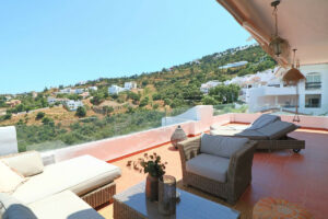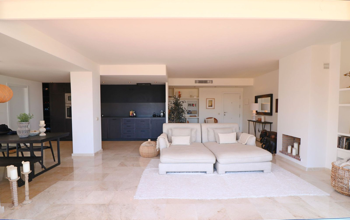Espectacular ático de 2 dormitorios y 2 baños completamente reformado en la exclusi-va zona de La Mairena, Ojén, rodeado de naturaleza y con vistas incomparables al mar, al campo de golf y a las montañas. La vivienda presenta un diseño moderno de concepto abierto, con una cocina integrada al salón-comedor que aporta gran amplitud y luminosidad a todo el espacio. Cuenta con dos terrazas privadas: una de más de 15 m² con impresionantes vistas al Valle de Mijas, al mar y al entorno natural, y otra de más de 6 m² con vistas despejadas a las montañas de Ojén, ideales para relajarse y disfrutar de la tranquilidad del entorno. Incluye dos amplias plazas de aparcamiento y un traste-ro. Se encuentra en una urbanización de lujo que ofrece cuidados jardines y una espectacular piscina infinity comunitaria con vistas al mar y a la montaña. Esta propiedad representa una oportunidad única tanto para vivir todo el año como para invertir en una de las zonas más tranquilas y privilegiadas de la Costa del Sol. Además, existe la posibilidad de adquirir el ático contiguo, de las mismas características pero a reformar, ya sea para unir ambas propiedades o como excelente inversión independiente. Su precio es de 455.000 €.