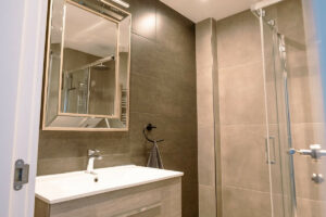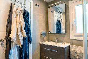 La propiedad cuenta con dos amplios dormitorios, cada uno con su propio cuarto de baño, que ofrecen comodidad y privacidad tanto a los residentes como a los invitados.