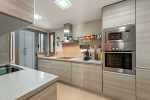 La cocina totalmente equipada es moderna y altamente funcional, con electrodomésticos de alta calidad y amplio espacio de encimera y almacenamiento, ideal tanto para el uso diario como para recibir invitados.