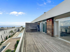 La amplia terraza privada, acabada con elegante madera de Teka en suelos y paredes, es perfecta para tomar el sol, organizar cenas al aire libre o simplemente disfrutar de las fascinantes vistas al mar.