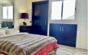 Hay dos amplios dormitorios y dos baños, incluyendo una suite principal con acceso directo a la terraza. La sala de estar y el dormitorio principal se abren a una terraza soleada, orientada al sur y al este que ofrece vistas panorámicas de las montañas y jardines ajardinados, un entorno perfecto para relajarse o cenar al aire libre.