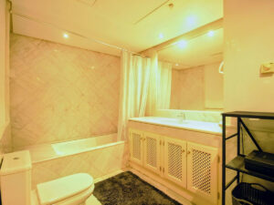 El segundo dormitorio también incluye armarios empotrados y un cuarto de baño completo con bañera.
