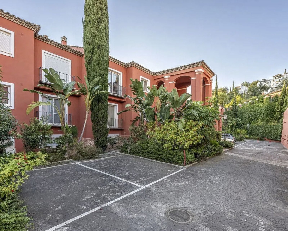 El exclusivo y bien cuidado Balcones de La Mairena cuenta con exuberantes jardines y una impresionante piscina infinita con vistas a la costa, su oasis privado de tranquilidad.