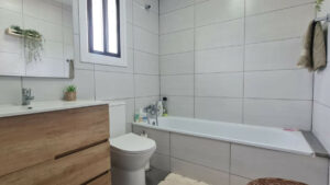 La vivienda se distribuye en dos amplios dormitorios con armarios empotrados y dos baños completos, ofreciendo una distribución cómoda y funcional. El salón es luminoso y acogedor, con acceso directo a las zonas exteriores, lo que permite una perfecta conexión entre el interior y el exterior.