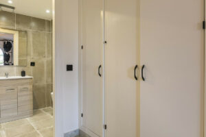 En la planta superior, los dos dormitorios ofrecen un retiro tranquilo y privado. El dormitorio principal tiene un diseño espacioso con su propio baño en suite, mientras que el segundo dormitorio es versátil, ideal para invitados, familia o una oficina en casa. La gran terraza es un lugar perfecto para disfrutar de un café por la mañana o relajarte por la tarde mientras ves el atardecer sobre el Mediterráneo.