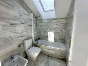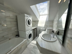 El apartamento dispone de dos amplios dormitorios, ambos con armarios empotrados, baños privados y balcones propios: uno con sol de tarde y vistas a La Concha, y el otro con sol de mañana y vistas al mar. En los días despejados, incluso se puede apreciar la impresionante silueta de Gibraltar.