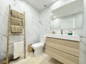 En la planta baja tenemos el hall de entrada con aseo de invitados apagado, una gran cocina totalmente equipada con lavadero y el amplio salón con chimenea y acceso a la terraza.