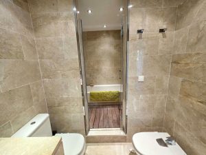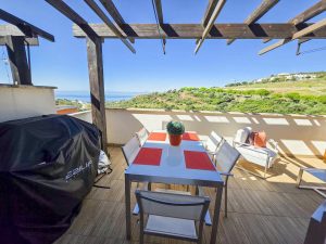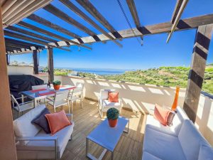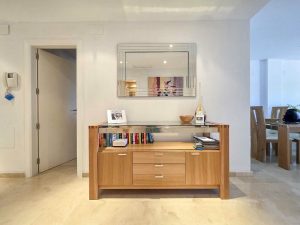 El apartamento le da la bienvenida con un espacioso recibidor que conduce a una luminosa y ventilada sala de estar. Desde aquí, unas puertas corredizas de cristal se abren a una terraza de 24 m² orientada al sur, donde podrá disfrutar de vistas panorámicas del Mediterráneo, Gibraltar y el paisaje circundante: vistas que le inspirarán cada día.