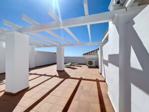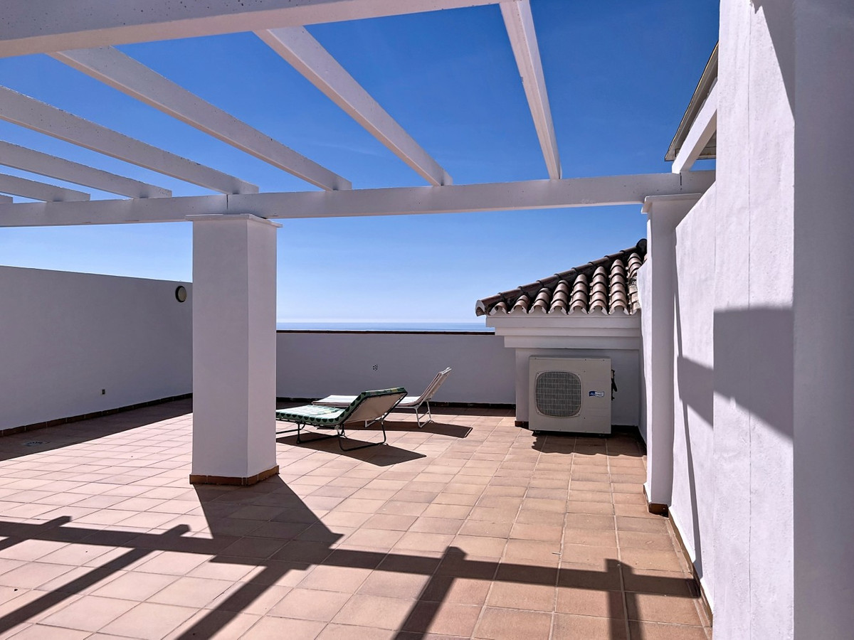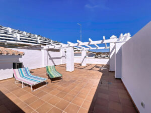 Moderno ático situado en una de las zonas residenciales más exclusivas de Rincón de la Victoria. Construido en 2015, esta propiedad ofrece una excelente combinación de confort, privacidad y diseño contemporáneo. La vivienda dispone de dos dormitorios y dos baños, incluyendo un dormitorio principal con baño en suite y acceso directo a la amplia terraza con vistas abiertas al mar. Uno de los baños cuenta con bañera de hidromasaje, y ambos disponen de suelo radiante. El luminoso salón-comedor se conecta a la perfección con la terraza, creando un espacio ideal para relajarse y disfrutar del clima mediterráneo. Desde la terraza se accede mediante una escalera exterior a un gran solárium privado, perfecto para tomar el sol, recibir invitados o disfrutar de las vistas panorámicas al mar. La propiedad cuenta con aire acondicionado con bomba de calor, mosquiteras en todas las ventanas, caja fuerte empotrada y sistema de alarma. La urbanización está completamente vallada y asegurada, y ofrece excelentes zonas comunes con tres piscinas y dos pistas de pádel, rodeadas de jardines bien cuidados. Se incluyen dos plazas de aparcamiento privadas y un trastero. Ubicación inmejorable: a solo 20 minutos de Málaga y 30 minutos del aeropuerto internacional, con la playa y todos los servicios a pocos minutos. Este ático es ideal tanto como residencia habitual como segunda vivienda en la Costa del Sol. Estamos encantados de poder presentar esta propiedad a usted pronto, ya sea personalmente o a través de la visión virtual. Porque este mundo, es único – como nuestra Axarquía. En Andalucía. En la Costa del Sol. Aquí, en el lado soleado de la vida…