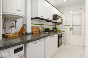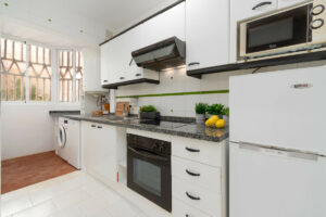 Cocina: Totalmente equipada con lavavajillas, frigorífico/congelador, horno, vitrocerámica, microondas, lavadora y hervidor de agua. El apartamento está completamente equipado con platos, vasos, cubiertos, ollas y sartenes, y también con cafetera.