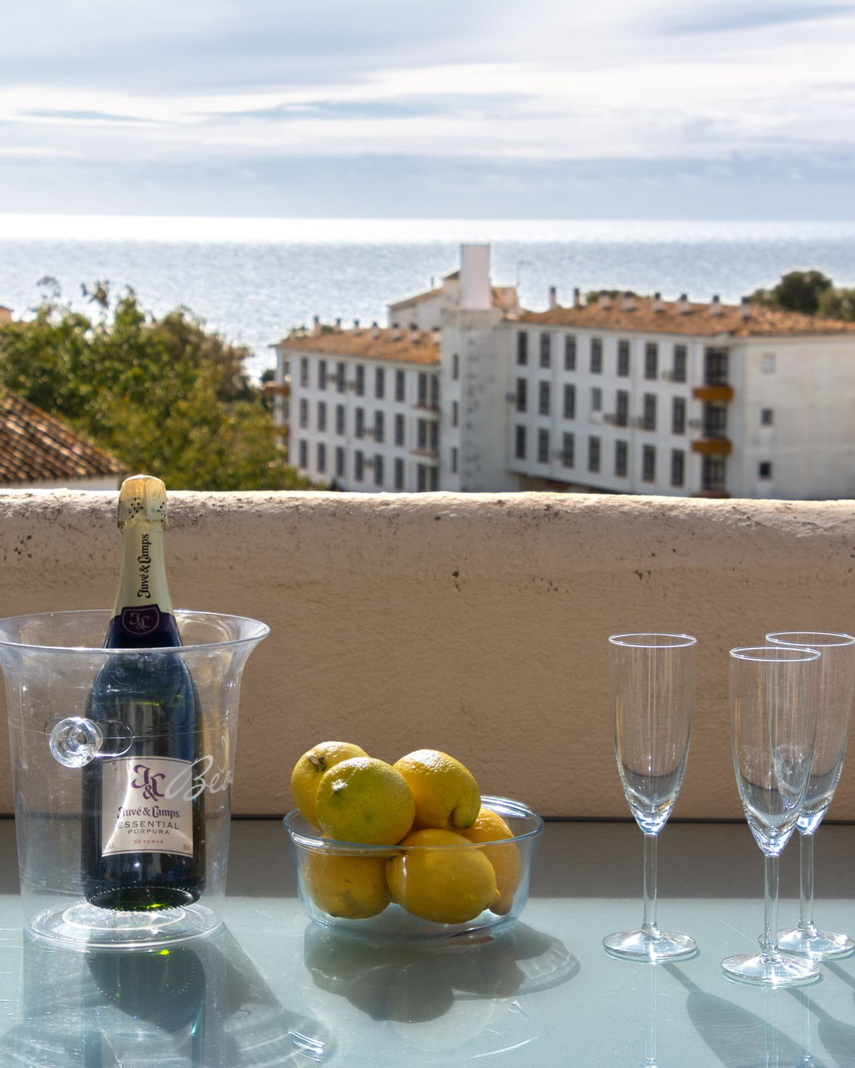 Terraza: Orientación suroeste, sol todo el día, 8 m², perfecta para comer, tomar el sol, etc. Vistas panorámicas al mar.
