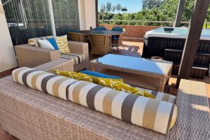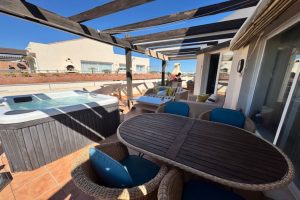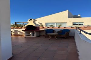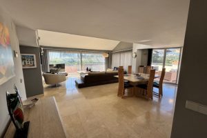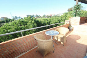 Este luminoso y espacioso ático de lujo de 2 dormitorios, con orientación sur, se encuentra en el exclusivo y cuidado complejo Milenio, en Riviera del Sol, junto a la prestigiosa Casa Club de Golf de Miraflores. La propiedad consta de un amplio salón-comedor, una cocina americana totalmente equipada, 2 dormitorios dobles, 2 baños (uno en suite) y una gran terraza envolvente con preciosas vistas al campo de golf, las montañas, el mar y los jardines comunitarios. El salón cuenta con preciosos ventanales de suelo a techo en dos lados y el dormitorio principal cuenta con amplios armarios empotrados con espejo, así como puertas que dan a la terraza. Este apartamento cuenta con acabados de alta calidad, con suelos de mármol, baño de mármol completamente alicatado, aire acondicionado (frío y caliente), videoportero, TV vía satélite, alarma, etc. Este tranquilo complejo cuenta con hermosos jardines tropicales muy bien cuidados, que incluyen un estanque. También cuenta con una gran piscina con zona de bar, piscina infantil independiente, gimnasio y sauna. El apartamento incluye plaza de aparcamiento subterráneo y trastero. 25 minutos aeropuerto de Málaga, 10 minutos Fuengirola y 10 minutos Marbella.