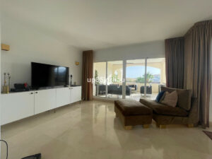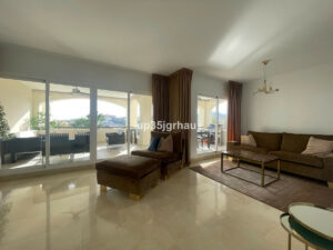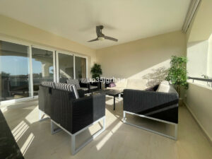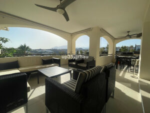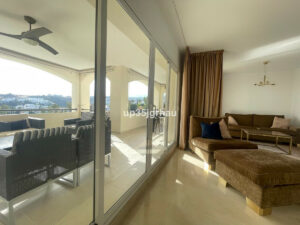 Tiene 2 dormitorios, 2 baños y un aseo, un salón muy amplia conectado con la gran terraza de 16 m2 con increíble vistas a la piscina, al jardines comunitarios y a las montañas. Una cocina equipada con lavadero.
