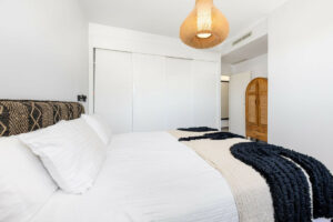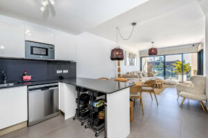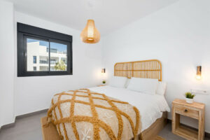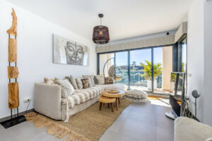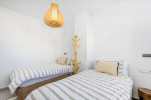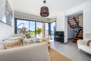 Este dúplex contemporáneo, una auténtica propiedad en primera línea de golf, está bien distribuido y equipado, ofreciendo tres dormitorios y dos baños. La suite principal es amplia y cuenta con un impresionante baño en suite, y los tres dormitorios disponen de grandes armarios empotrados. Destaca la magnífica cocina-comedor-salón que da acceso a la espaciosa terraza envolvente destinada a comedor y zona de estar, con vistas que alcanzan hasta La Cala y sus alrededores.