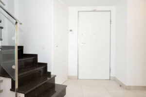 En la primera planta encontramos una zona de estar diáfana, luminosa y espaciosa, con techos altos que dan a este apartamento una sensación de amplitud nada más entrar. Este dúplex cuenta con preciosos suelos de Porcelanosa en todas las estancias y una cocina bien equipada con una preciosa encimera de Silestone, perfecta para recibir invitados o disfrutar de un relajante brunch. Todas las luces del techo de la casa son de bajo consumo y cuentan con elementos invisibles.