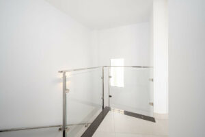Una sofisticada escalera moderna nos lleva al piso superior, donde encontramos dos dormitorios más, cada uno con su propio cuarto de baño. El dormitorio principal cuenta con amplios armarios empotrados. En ese mismo nivel, vemos una segunda terraza abierta, ideal para tomar el sol, ya que es perfectamente privada, y donde se puede disfrutar de un aperitivo mientras se contemplan las increíbles vistas.