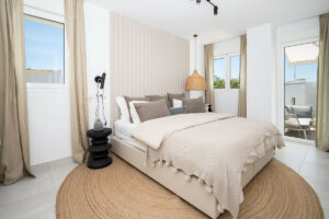 La fantástica terraza se extiende a lo largo de toda la planta y se puede acceder a ella tanto desde el salón como desde la cocina. Tiene espacio para una mesa de comedor, perfecta para reuniones en una cálida tarde de verano andaluza o para un divertido almuerzo familiar. También es una acogedora zona de descanso donde se puede disfrutar de una buena copa de vino, una conversación relajada y, por supuesto, de las fabulosas vistas del Mediterráneo y las colinas cercanas. ¡Un pequeño paraíso en casa!