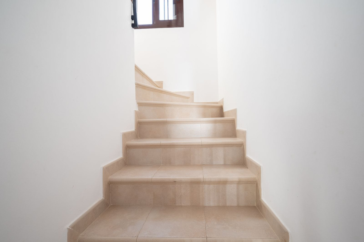 La planta superior cuenta con un amplio dormitorio principal con vistas al mar y a la montaña, junto con un baño en suite con ducha, inodoro y lavabo. La suite principal incluye un armario empotrado y un cuarto de baño con ducha a ras de suelo, lavabo, inodoro y bidé. En esta planta superior también hay un segundo dormitorio espacioso con cuarto de baño en suite con bañera, lavabo e inodoro. Antes de llegar a ambos dormitorios, también encontrará un espacio independiente que se utiliza como despacho. Tanto el dormitorio principal como el segundo dormitorio dan a una maravillosa y espaciosa terraza donde podrá tomar el sol con total privacidad.