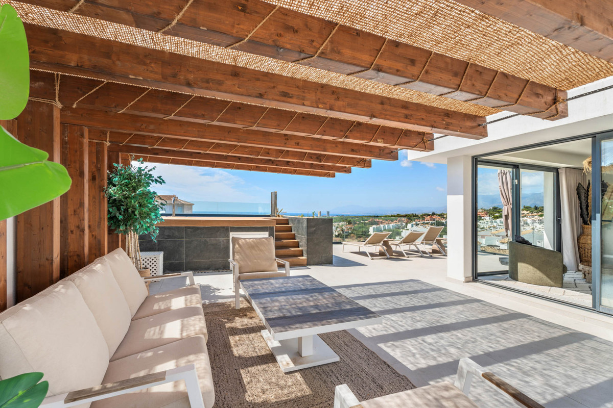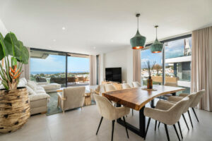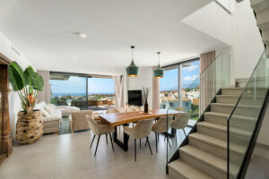 Este ático dúplex contemporáneo en Marbella Este ha sido diseñado cuidadosamente en dos niveles, combinando arquitectura moderna con espacios de vida bien definidos. Cada detalle ha sido pensado para maximizar la luz natural, la fluidez entre interior y exterior y la privacidad.
