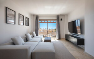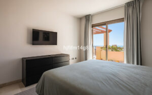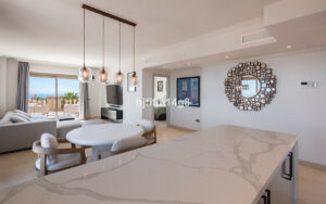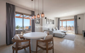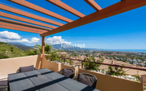Este lujoso ático de una sola planta ofrece impresionantes vistas panorámicas al mar y a las montañas. La propiedad cuenta con un hall de entrada que conduce a una amplia sala de estar y comedor, que se abre a dos terrazas: una orientada al sureste con vistas a la montaña de La Concha, el campo de golf de Atalaya y el mar Mediterráneo; y otra orientada al sur/suroeste, que ofrece vistas espectaculares del mar, Gibraltar y la costa norteafricana.