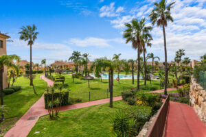 La propiedad se encuentra dentro de un desarrollo maduro y bellamente mantenido con cuatro piscinas comunitarias y jardines cuidados, ofreciendo un ambiente tranquilo y privado.