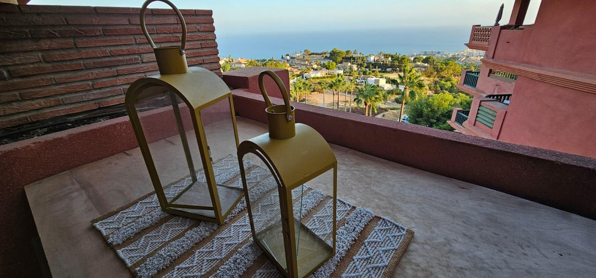 Se vende hermoso ático amueblado en la zona del Higuerón, con tres dormitorios y dos cuartos de baño, uno de ellos en suite. Cocina tipo americana amueblada y equipada. Preciosas vistas hacia la montaña por la parte trasera y bonitas vistas a los jardines, piscina y el mar por la parte delantera, salón y dormitorio principal. Desde el salón se accede a una terraza de 20 metros donde disfrutar de preciosos amaneceres con vista despejadas. Cuenta con sistema de aire acondicionado centralizado frio/calor. Alarma.
