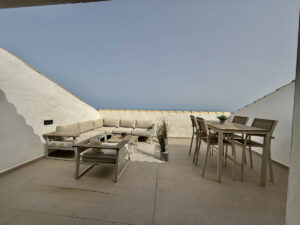 Consta de tres habitaciones en planta alta con dos baños en la misma planta, uno de ellos en suite, y una espectacular terraza para disfrutar de las vistas.