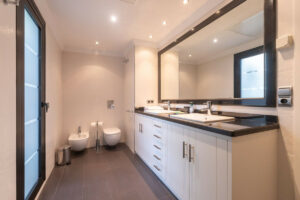 La primera planta está distribuida en dos dormitorios, ambos con baños en suite y con salida a otra terraza, también con barbacoa de obra.