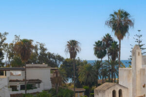 Bonito y acogedor ático duplex de tres dormitorios ubicado en Elviria y a un solo paso de la playa. Se distribuye en dos plantas más una soleada azotea con preciosas vistas abiertas al complejo y al mar lejano.