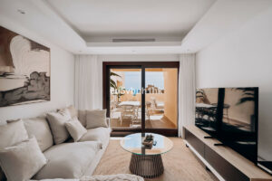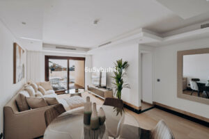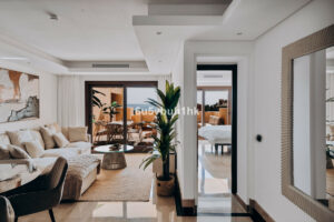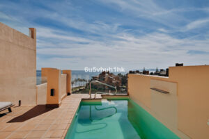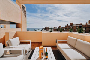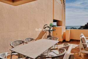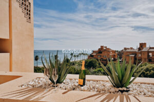 Este espectacular ático dúplex de tres dormitorios y tres baños está situado en la prestigiosa urbanización Bahía de la Plata, en primera línea de playa en Estepona. Una propiedad única que combina lujo, comodidad y un enclave privilegiado con vistas inigualables al Mar Mediterráneo y al Peñón de Gibraltar.