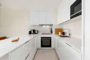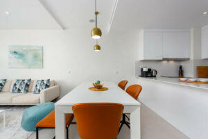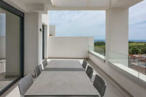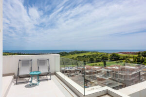 Con 3 amplios dormitorios y 2 baños modernos, cuenta con una cocina americana y dos grandes terrazas, ideal para disfrutar de las impresionantes vistas del campo de golf, el mar y las montañas. El dormitorio principal incluye baño en-suite y acceso privado a la terraza.