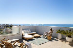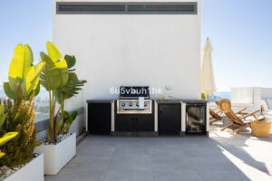 El punto culminante de esta vivienda es su solárium privado de 93m², equipado con una pérgola, cocina exterior y zona chill-out, ideal para relajarse, recibir invitados y disfrutar de las vistas al mar.