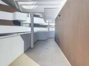La planta principal del ático está diseñada para ofrecer confort y funcionalidad. El amplio salón se beneficia de suelos de porcelanato, doble acristalamiento y puertas de cristal que se abren a una terraza privada, permitiendo que la luz natural inunde el interior y ofreciendo vistas urbanas y al mar. La cocina de concepto abierto, totalmente equipada, dispone de electrodomésticos modernos, una península e incluye un lavadero independiente, facilitando las rutinas diarias.