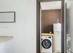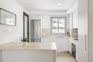 Los acabados han sido cuidadosamente seleccionados: suelos de gres porcelánico, puertas lacadas en blanco, carpintería exterior con doble acristalamiento y persianas motorizadas en el salón y los dormitorios. Además, dispone de aire acondicionado por conductos con control independiente, sistema de aerotermia para agua caliente y ventilación mecánica para garantizar el máximo confort y eficiencia energética durante todo el año. El apartamento incluye 1 plaza de garaje subterránea y un amplio trastero, todo dentro de un complejo cerrado que ofrece seguridad y tranquilidad.