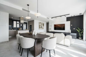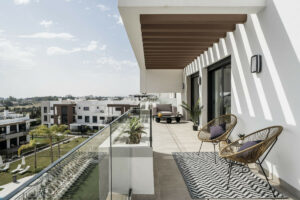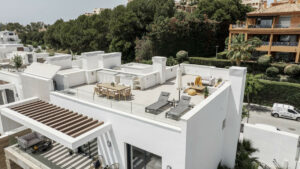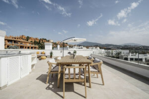 La espaciosa terraza es ideal para comidas al aire libre y momentos de ocio, mientras que el solárium en la azotea brinda vistas panorámicas y un amplio espacio para tomar el sol o desconectar con total privacidad.