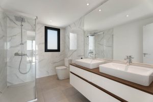 La suite principal cuenta con un baño en suite y acceso directo a la terraza principal, lo que establece una conexión privada con las zonas exteriores. Dos dormitorios adicionales comparten un cuarto de baño independiente, lo que ofrece flexibilidad para la familia o los invitados.