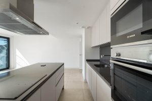 La terraza principal, de unos 31 m², amplía el espacio habitable al exterior y es accesible directamente desde la zona de estar interior. Una escalera de caracol conduce al solárium privado de casi 70 m², donde las vistas al mar abierto crean un entorno tranquilo para disfrutar al aire libre durante todo el año.