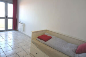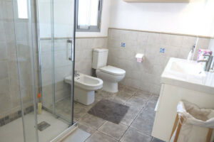 La planta superior está dedicada a un amplio salón de concepto abierto que conecta directamente con una soleada terraza descubierta—ideal para cenas al aire libre o para relajarse bajo el cielo mediterráneo. En este nivel también hay un segundo baño para mayor comodidad.