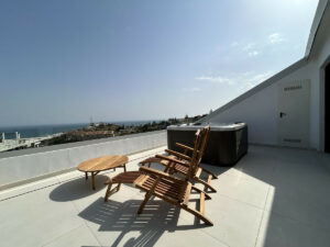 En venta exclusivo ático a estrenar de 3 dormitorios y amplia terraza al sur con vistas al mar y la montaña.