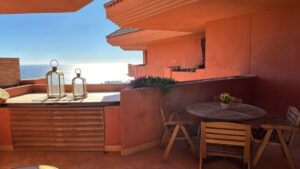 • Terraza con vistas infinitas al mar, ideales para relajarte, recibir invitados o disfrutar del clima mediterráneo