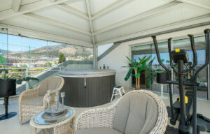 Dos amplias terrazas acristaladas ofrecen espectaculares vistas panorámicas al mar, creando el entorno perfecto para comer al aire libre, relajarse y disfrutar de inolvidables puestas de sol. Entre sus características adicionales se incluyen dos plazas de aparcamiento subterráneo, un trastero privado y acceso a una exclusiva zona de piscina para residentes.