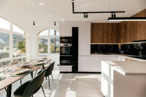 Cocina moderna: La cocina, totalmente equipada con electrodomésticos de última generación, cuenta con un práctico comedor, ideal para amantes de la cocina y reuniones familiares.