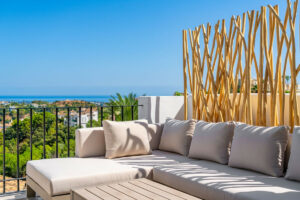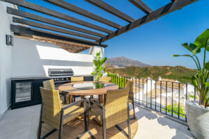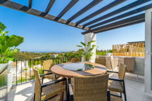 Situado en una posición privilegiada con vistas a las ondulantes colinas de La Quinta y al brillante Mediterráneo más allá, este ático completamente nuevo y orientado al sur se define por sus espectaculares vistas. Aquí, las vistas panorámicas e ininterrumpidas al mar son el eje de la experiencia de vida, extendiéndose sin fin a lo largo del horizonte y bañando los interiores con luz desde el amanecer hasta el atardecer. Su orientación garantiza sol durante todo el día, mientras que su posición elevada permite capturar tanto el dramático paisaje natural de La Quinta como la serena extensión del mar. Desde el salón y la cocina de diseño hasta la suite principal, la amplia terraza e incluso el baño, el panorama está siempre presente, ofreciendo un telón de fondo hipnótico que cambia de color y tono con el paso de las horas.