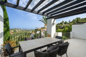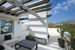 Descubra este espectacular ático dúplex completamente reformado, situado en La Quinta Golf, en pleno corazón de las colinas de Nueva Andalucía. Un entorno tranquilo con vistas panorámicas excepcionales, a solo 12 minutos del vibrante Puerto Banús. El cercano clubhouse completa este enclave privilegiado con un magnífico spa, academia de golf y restaurante dentro de un hotel cinco estrellas.