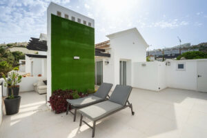 En la planta superior le espera la suite principal, que destaca por su amplitud, su vestidor independiente y su espectacular cuarto de baño. Esta estancia se abre a una magnífica terraza solárium, parcialmente cubierta, que ofrece impresionantes vistas y espacio de almacenamiento adicional.