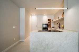 Cocina moderna totalmente equipada con electrodomésticos nuevos