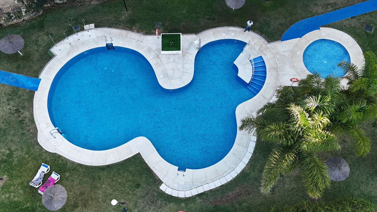 La propiedad forma parte de un complejo cerrado y muy bien cuidado, que ofrece jardines tropicales, dos piscinas (una infantil), dos pistas de tenis/pádel y un gran parque infantil completamente equipado, donde los niños pueden jugar con total seguridad durante todo el día.