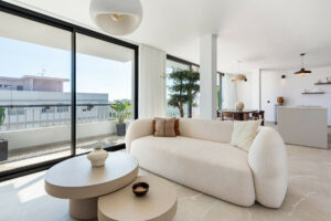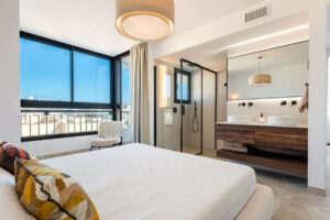 Distribuido en 146 m² en la séptima planta, el luminoso salón de concepto abierto se integra perfectamente con una cocina contemporánea, creando un espacio acogedor tanto para relajarse como para recibir invitados. Disfrute de impresionantes vistas al mar, una característica realmente poco común en la ciudad. El confort está garantizado gracias al sistema de aire acondicionado Airzone en todas las estancias, que proporciona climatización tanto en frío como en calor.